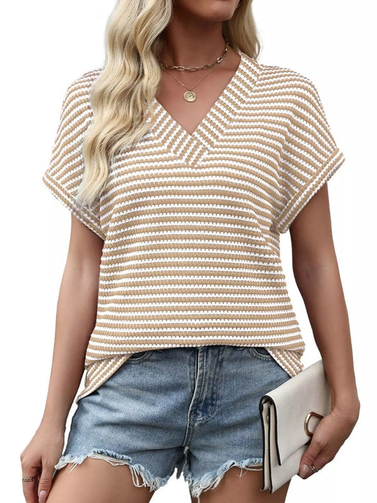 Striped V-Neck Relaxed Fit T-Shirt
