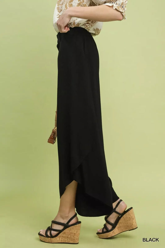 Umgee Flowy Asymmetrical Hem Wide Leg Pants