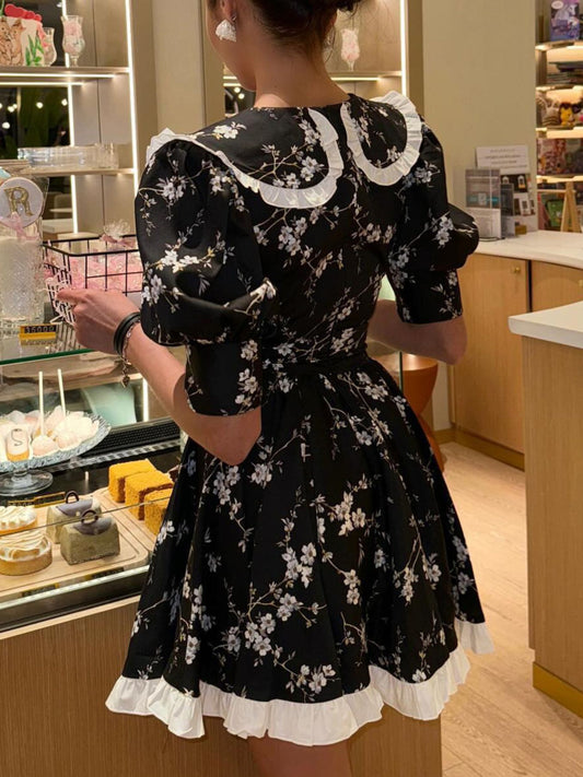 Floral Print Puff Sleeve Mini Dress