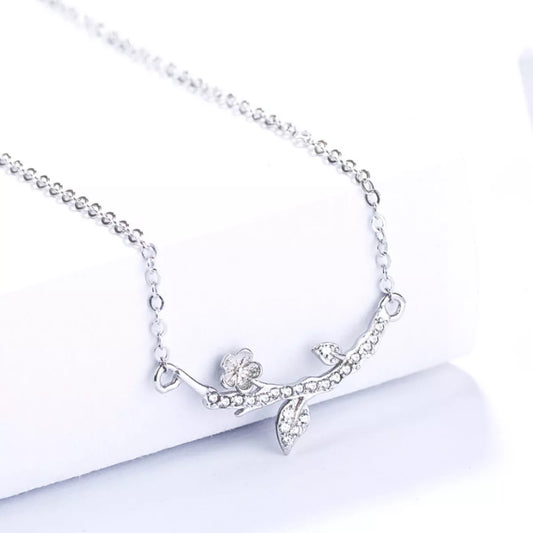 925 Sterling Silver Zircon Flower Necklace