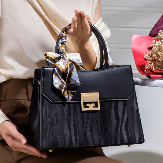 Scarf Decor Leather Handbag