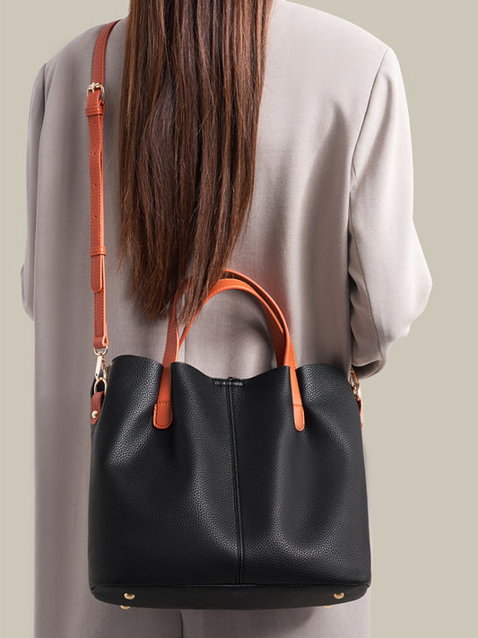 Leather Contrast Handle Handbag