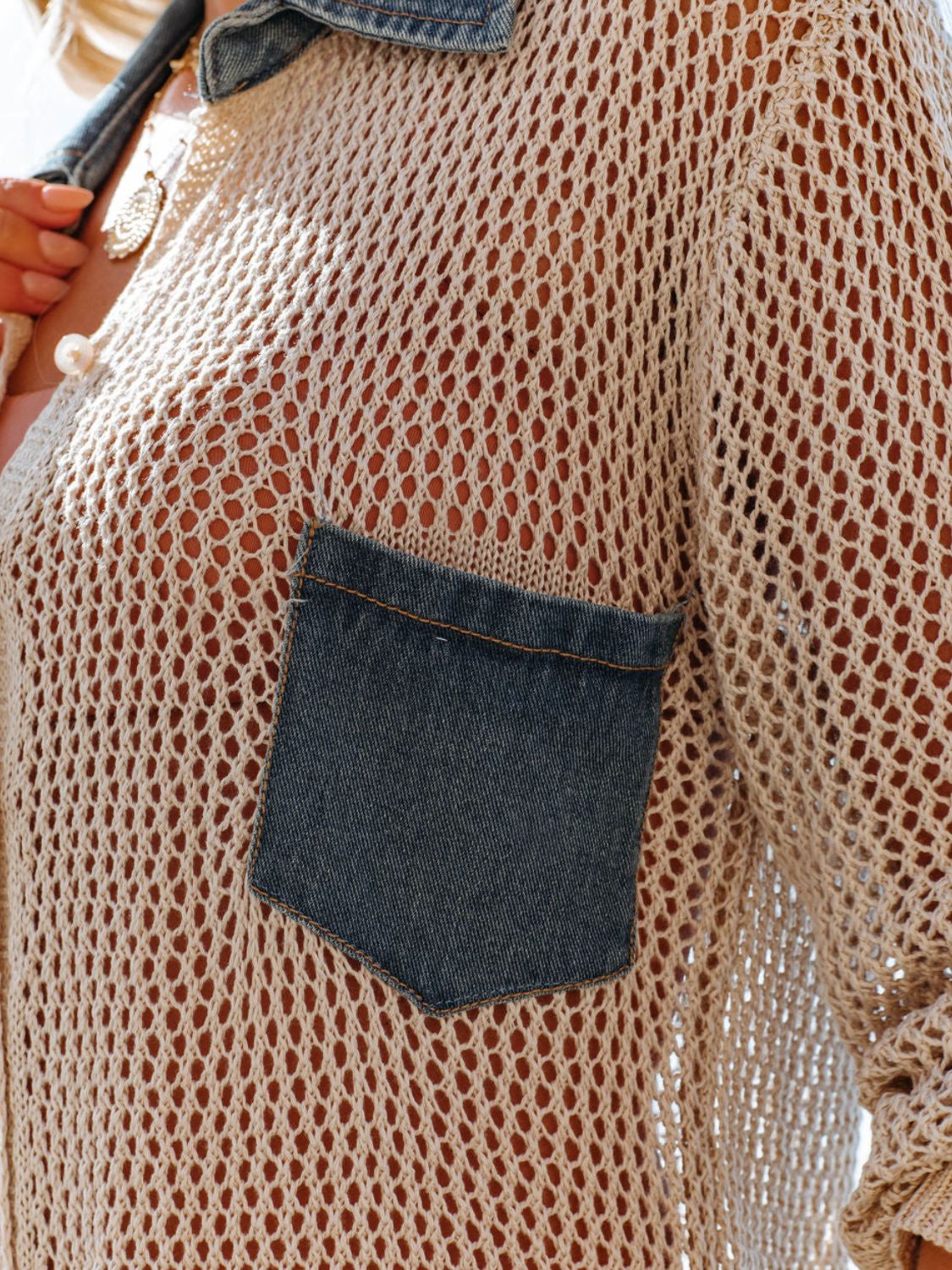 Side Slit Openwork Collared Neck Cover-Up